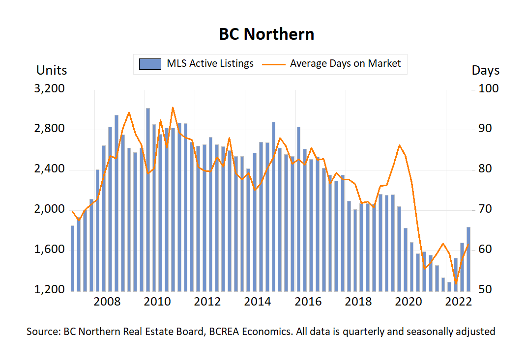 Sales in the BC Northern region continued to gradually recover in the third quarter of 2023, rising to 960 sales on a seasonally adjusted basis, up from this time last year but still below average for the region. Active listings remain hit 1,741 on a seasonally adjusted basis, a level which the region has been stuck at since this time last year. This level of active listings is below balanced market levels and also well below the level of listings that prevailed prior to the pandemic. The average price for the board hovered around $408,000 in the third quarter, a level not far from the peak of $431,000 which was hit in the second quarter of 2022. The seasonally adjusted average days on market were largely unchanged from the previous quarter at 73.
