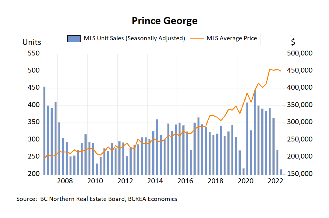 Markets around the Board region varied. Sales rose from the prior quarter in Prince George, Prince Rupert, Fort St John, 100 Mile House, and Williams Lake, while declining in Kitimat, Smithers, Terrace, and Quesnel. Overall, the housing market in the BC Northern Board area remains soft as high and rising interest rates have constrained affordability for buyers. With mortgage rates expected to remain high into 2024 amid softening labour markets and economic growth, sales are anticipated to remain cool into 2024.