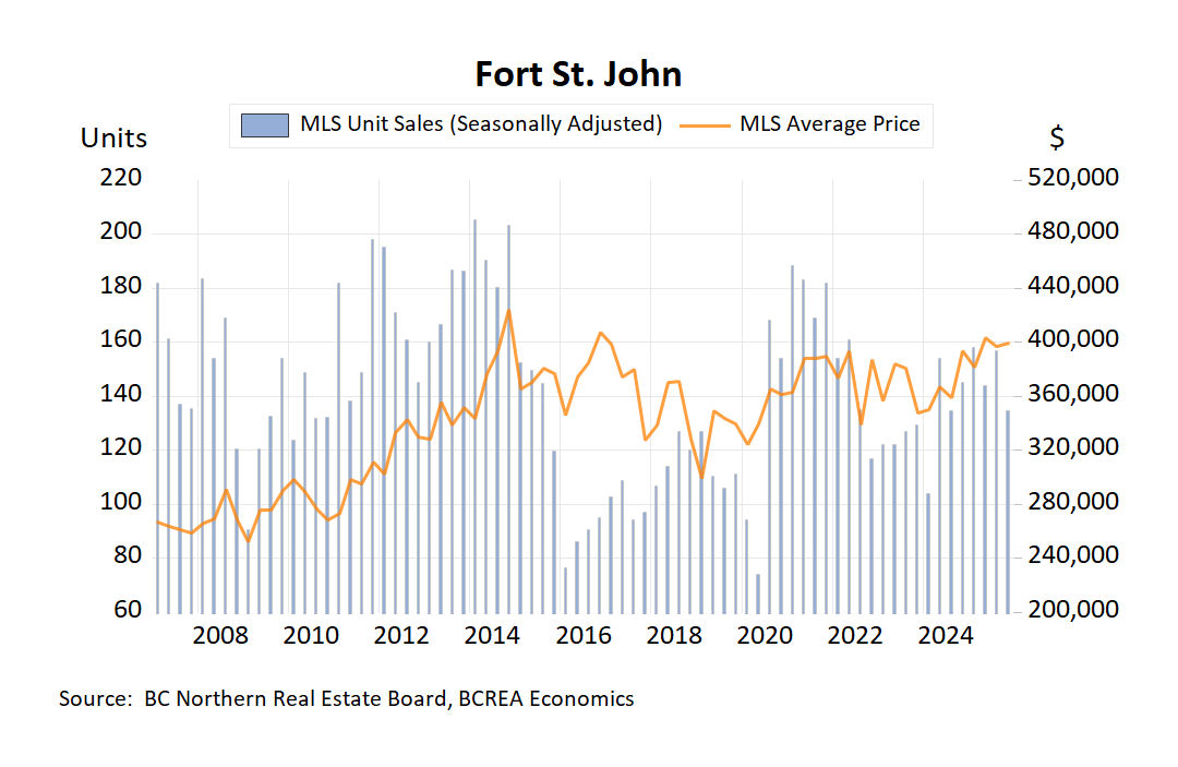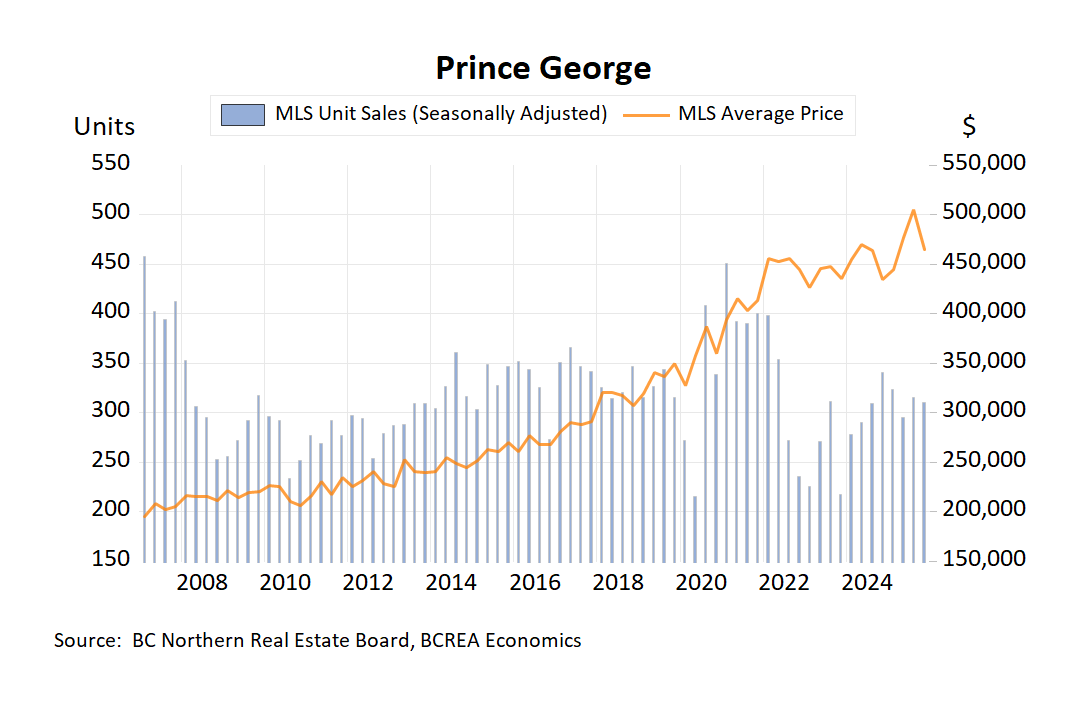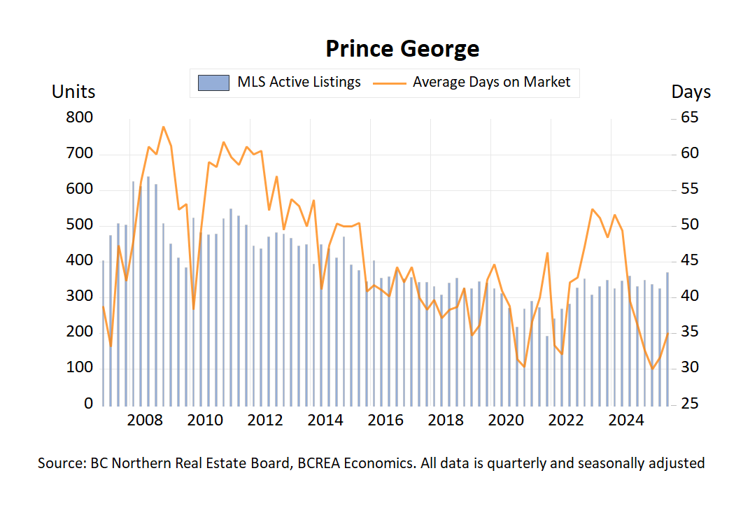 Prince George: 1362 properties worth $669.7 million sold in 2025, compared with 1335 properties worth $623.8 million in 2024. At year-end, there were 591 properties of all types available through MLS® compared to 575 properties at the end of 2024.