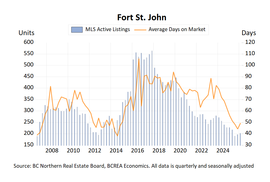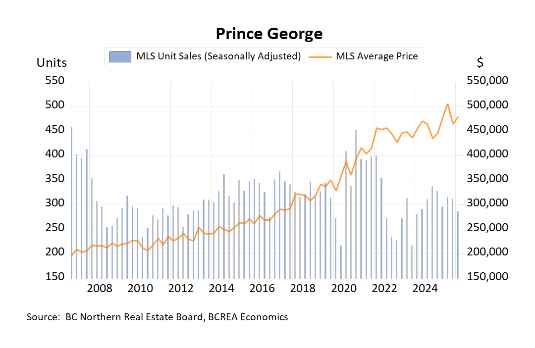 Prince George: 1362 properties worth $669.7 million sold in 2025, compared with 1335 properties worth $623.8 million in 2024. At year-end, there were 591 properties of all types available through MLS® compared to 575 properties at the end of 2024.